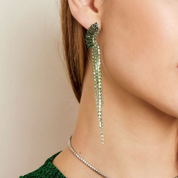 Prachtige strass oorbellen van Benssens met heel veel steentjes en grotere steentjes bovenaan de oorbellen! De bovenkant van de oorbellen is een maan-vorm en  wij zijn helemaal verliefd op deze prachtige oorbellen! De oorbellen zijn gemaakt van koper in combinatie met strass steentjes in de kleur zilver.