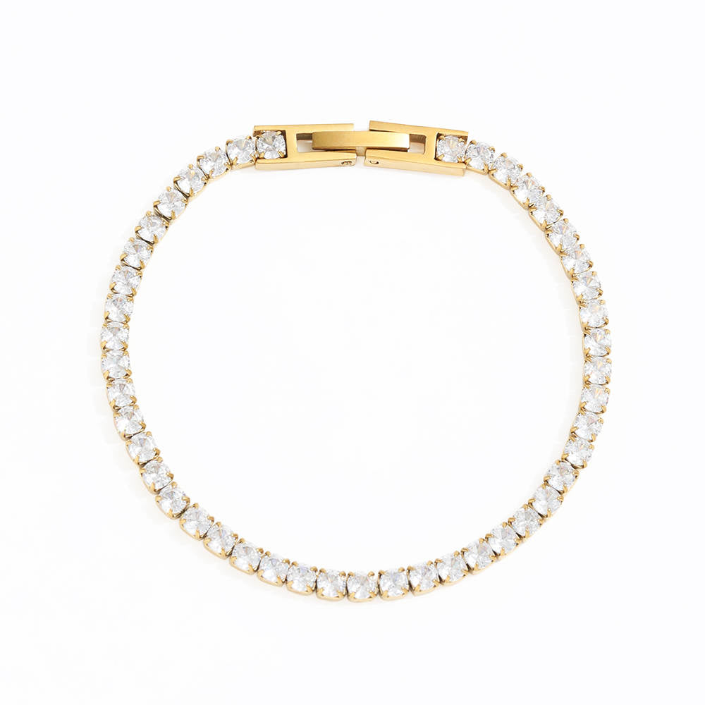 •  Stainless steel goudkleurige armband met Zirconia steentjes (17 cm) T.w.v. € 15,95