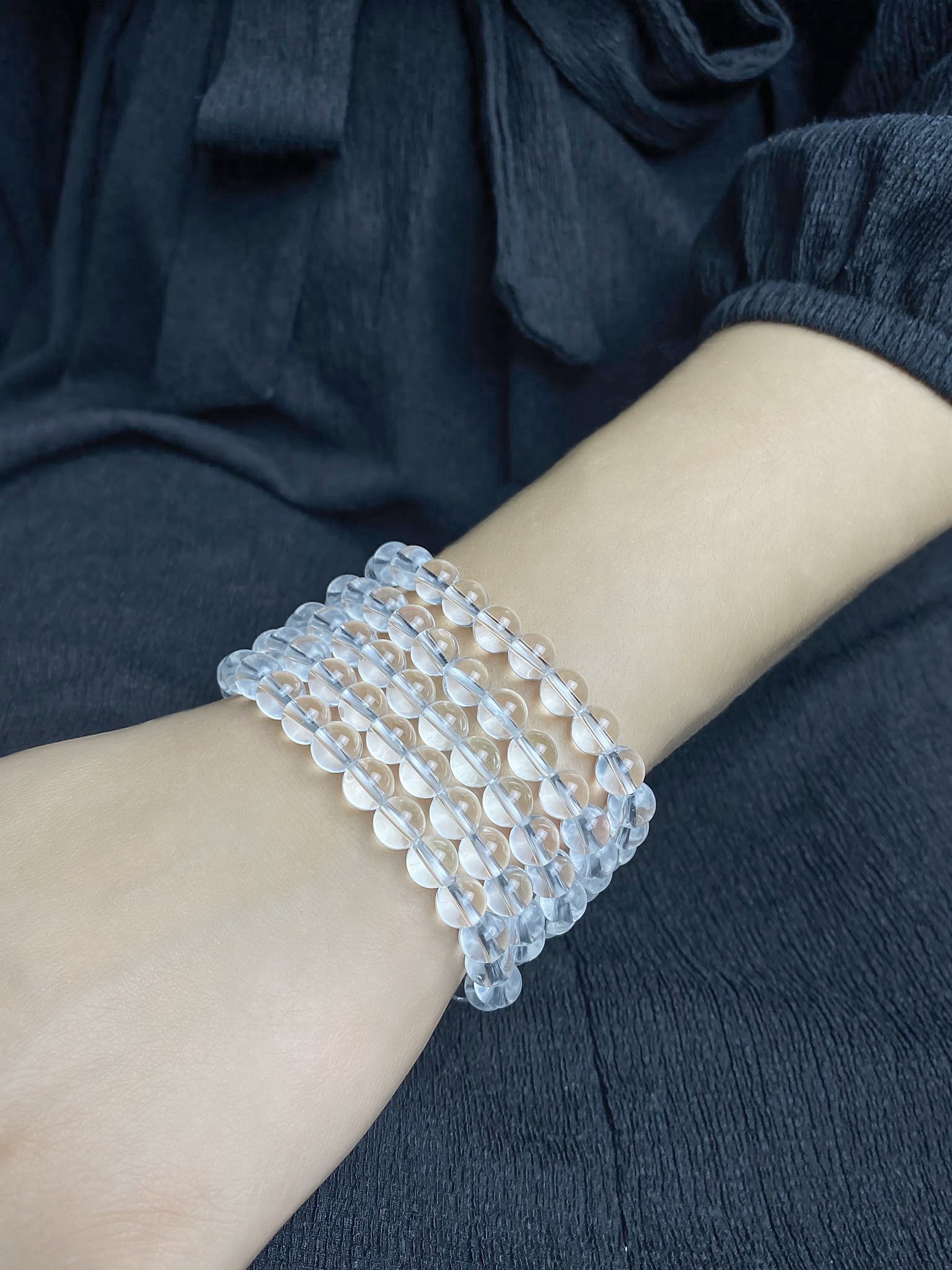 Deze prachtige bergkristal armband wordt bij elkaar gehouden door een stevig dubbel elastiek. De bergkristal kralen hebben een diameter van 8 mm en is van goede kwaliteit!