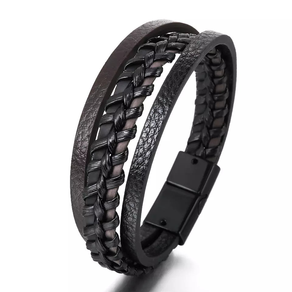 Heren Armband Echt Leer Bruin Zwart met Magnetische Sluiting 21 Cm Mano