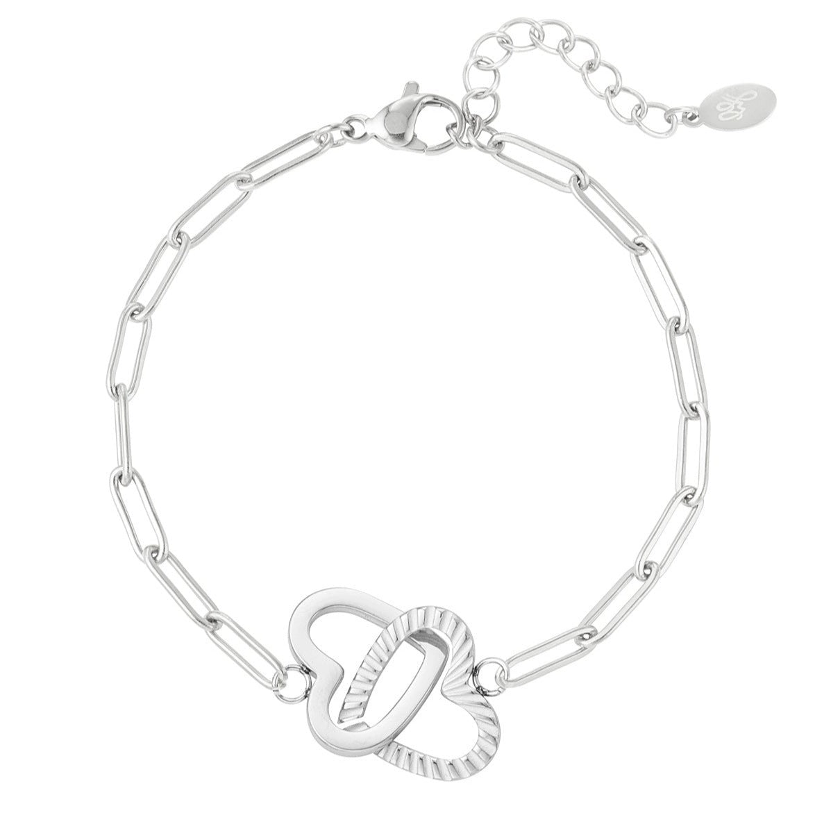 Dames schakelarmband linked hearts zilverkleurig stainless steel