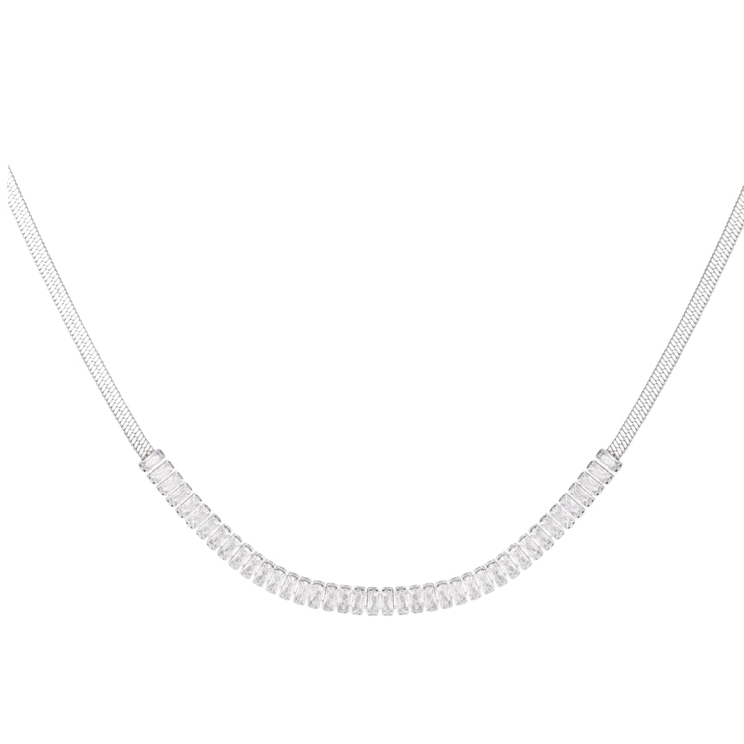 Stainless steel zilveren ketting met witte Zirconia steentjes.